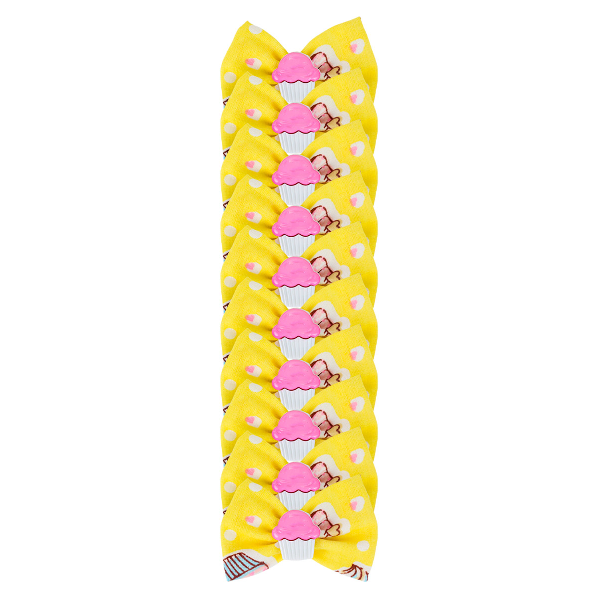 O Laço Essencial é confeccionado em tricoline estampado e possui um aplique de sorvete. Além de estiloso e divertido, o Laço é ideal para topete preso por elástico.